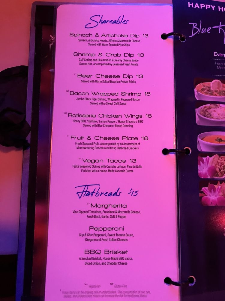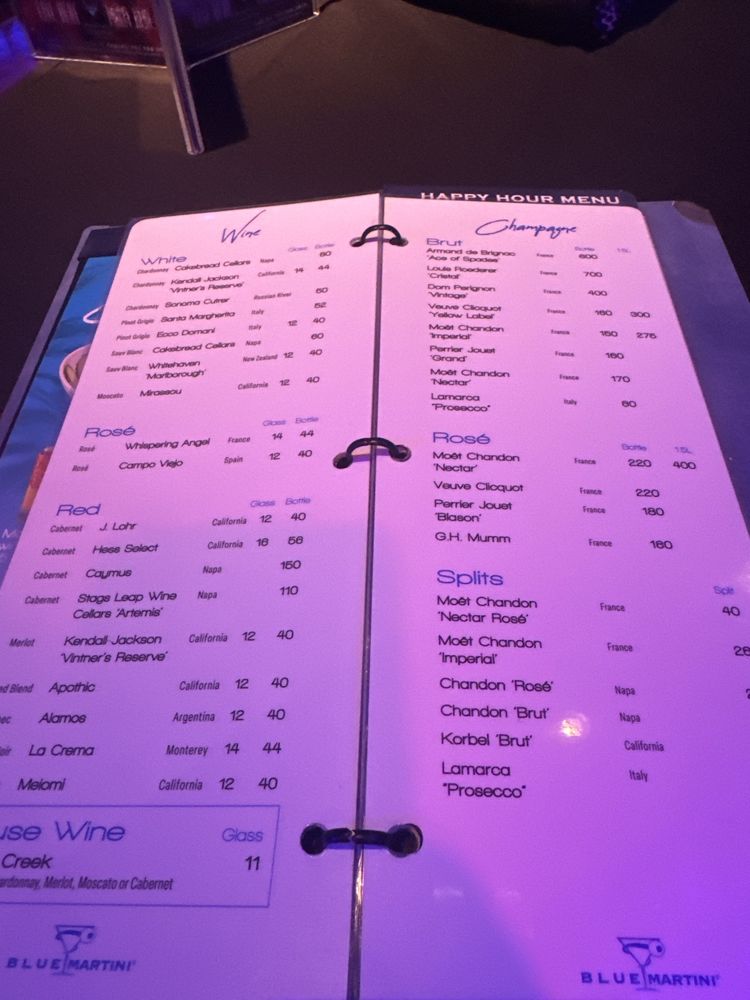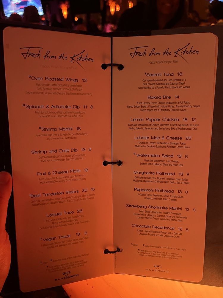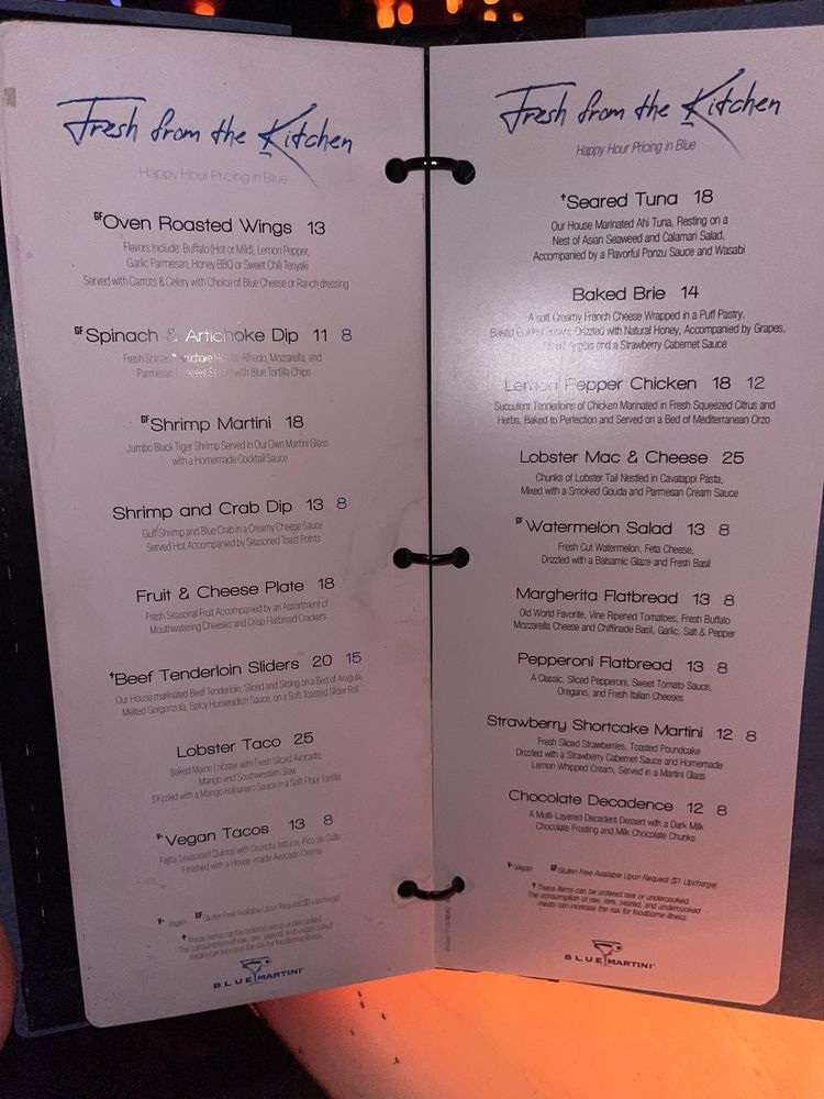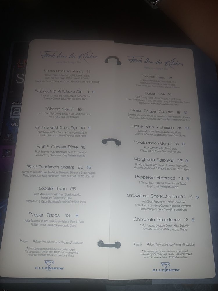 Blue Martini Lounge, located in Las Vegas, offers a vibrant nightlife experience with an upscale and energetic vibe. The spacious layout includes a sleek bar, hookah, and outdoor patio with heat lamps. The cocktail menu boasts a long list of martinis and appetizers, such as Spinach & Artichoke Dip and Baked Brie En Croute. Signature dishes like Seared Tuna and Lobster Salad showcase the restaurant's commitment to quality and flavor. Customers praise the attentive service and stylish atmosphere, making it a great spot for a relaxed night out with friends. The diverse menu with vegetarian options, trendy ambiance, and live music on select nights make Blue Martini Lounge a must-visit destination for those looking for a fun and lively dining experience in Las Vegas.